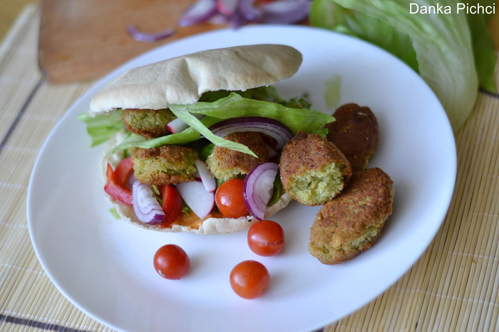 4. Gotowe falafele można podawać z ulubionymi warzywami i sosem w chlebkach typu pita lub tortillach.