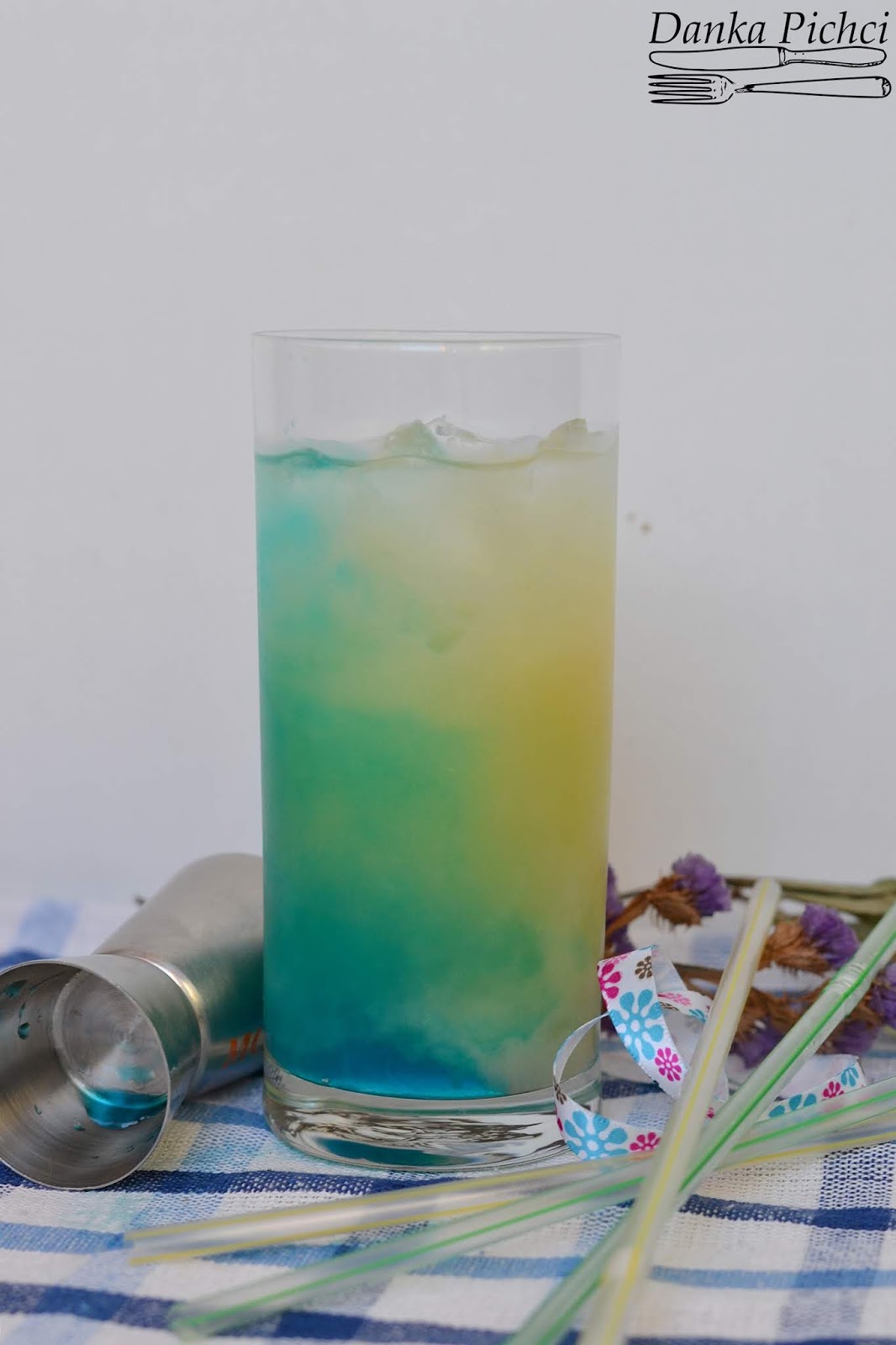 1. Do wysokiej szklanki wsypać pokruszony lód. Wlać biały rum lub wódkę. Następnie dodać sok bananowy, a później sok ananasowy. Na koniec ostrożnie po ściankach szklanki wlać likier blue curacao.