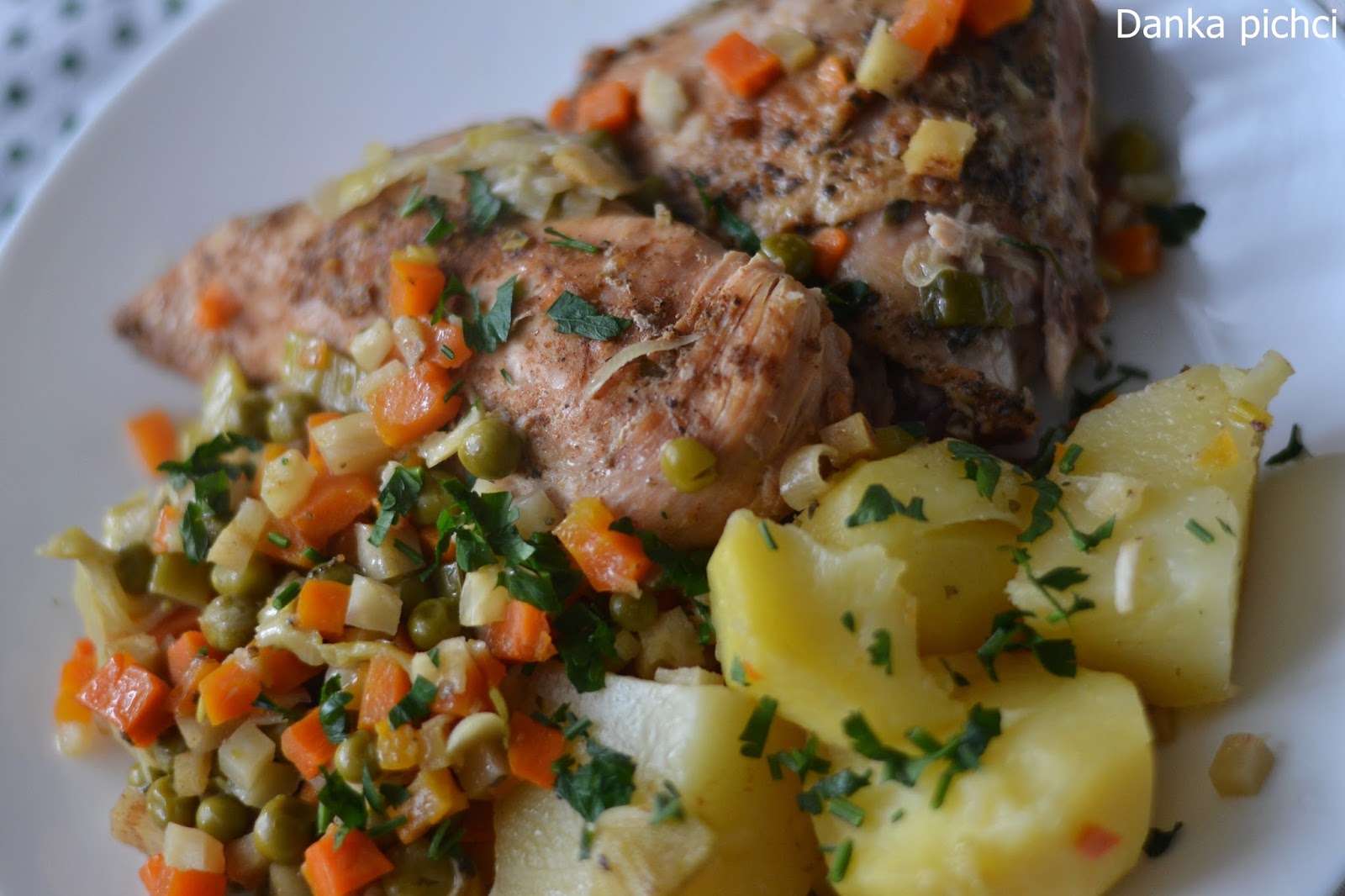 Wiele przepisów, które zamieszczam na swoim blogu pochodzi z zeszytu mojej teściowej. Należy do nich też przepis na kurczaka w jarzynach. Można go zaliczyć do dania jednogarnkowego i świetnie nadaje się na niedzielny obiad. Ja zazwyczaj przygotowuję to danie w sobotę wieczorem, a w niedzielę wstawiam do piekarnika i obiad gotowy. Jeżeli lubicie dania jednogarnkowe to musicie spróbować! 🙂