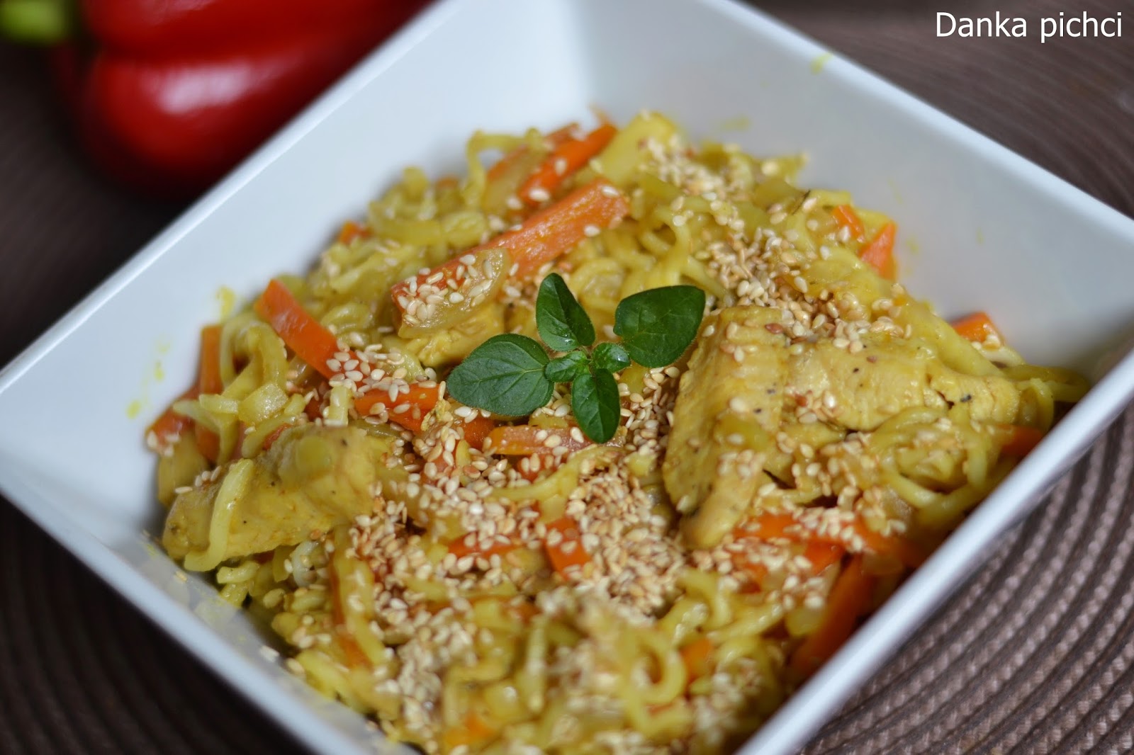 5. Dodać wcześniej ugotowany makaron. Całość wymieszać i posypać uprażonym sezamem.