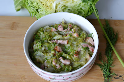 Właśnie jestem po konsumpcji, kapustka z boczusiem i do tego tylko młode ziemniaczki z koperkiem – po prostu ekstaza!
