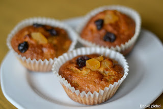 Muffinki przyozdobiłam żurawiną i suszonymi morelami.