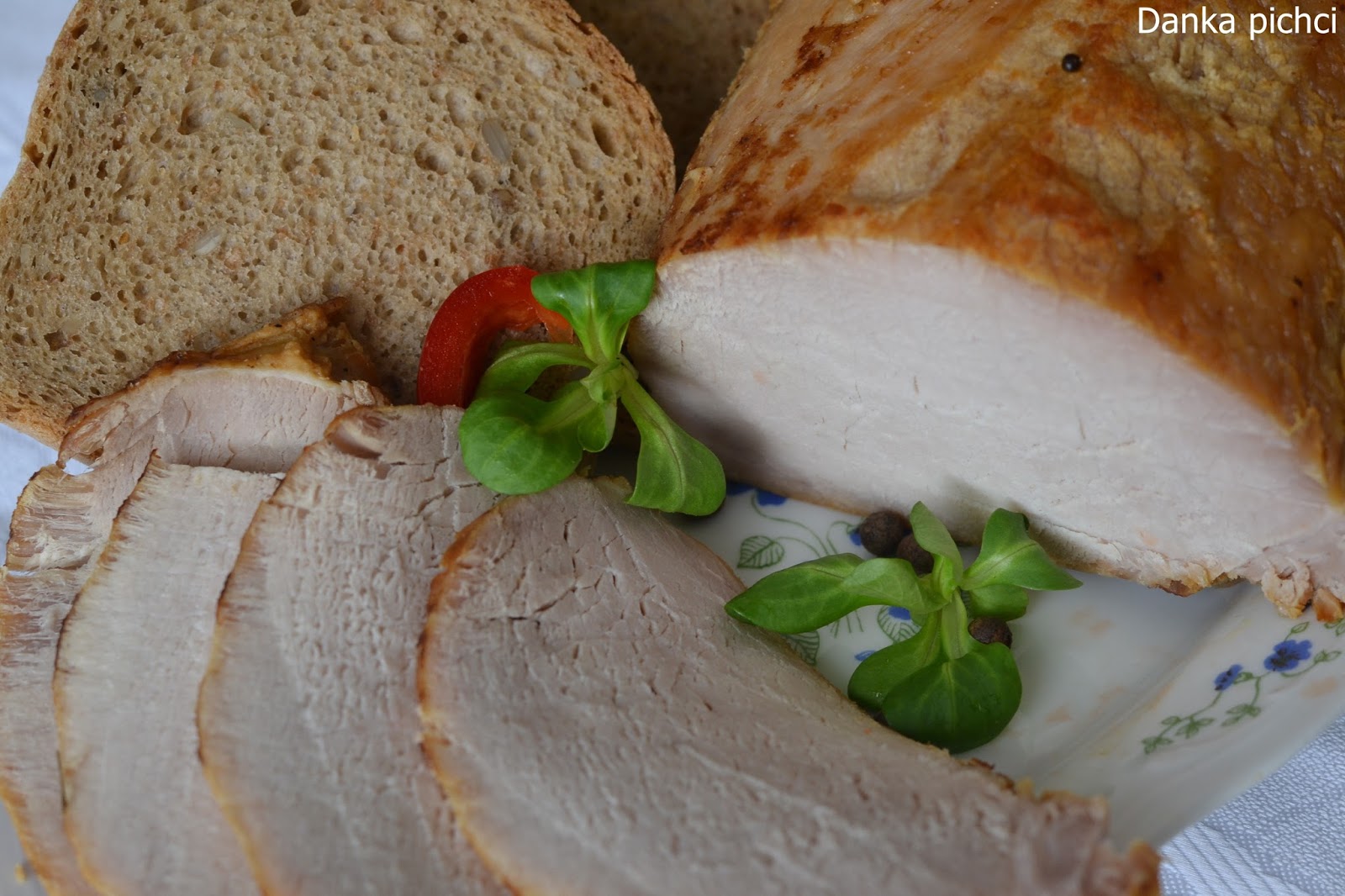 Zazwyczaj wędlinę kupuję w sklepie, ale czasami próbuję zrobić w domu własną. Jakiś czas temu robiłam schab gotowany w majonezie (przepis), a tym razem przygotowałam schab pieczony. Dzięki temu, że mięso jest zapiekane w woreczku to się nie wysusza i wędlina jest soczysta oraz miękka, a poza tym nie zawiera różnych konserwantów i ulepszaczy smaku jak te sklepowe. Świetnie nadaje się do kanapek jak też na świąteczne przyjęcia! 🙂