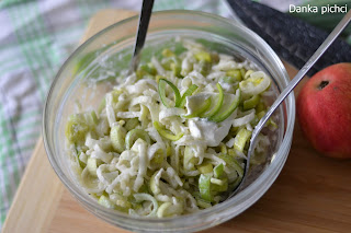 Zazwyczaj do obiadu przygotowuję surówki na bazie kapusty lub sałaty. Tym razem jednak postanowiłam coś zmienić i przygotowałam ekspresową surówkę z pora z jabłkiem. Możną ją również podać do potraw z grilla lub jako dodatek do kanapek i wędlin.